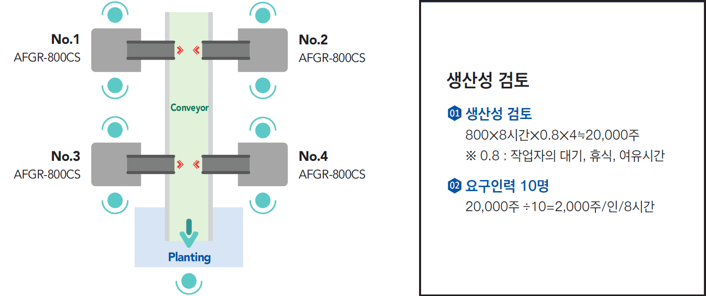 - 높은 접목율과 균일성 또한 수작업에 비해 월등히 향상되며, 뿌리 유무의 상관없이 적용이 가능하다는 장점이 있습니다.