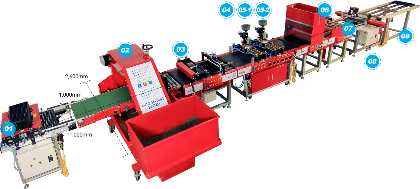 - 기존의 자동파종 시스템(광폭형) 대비 2배 속도 / 생력화 / 클린업 시스템