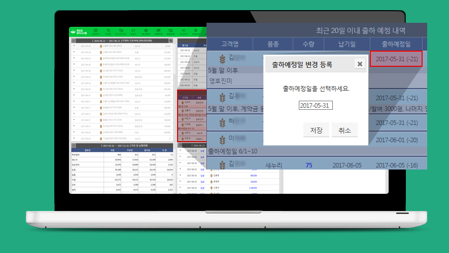주문 등록시 입력하는 납품일과 출하예정일을 별도 관리하여 출하예정일을 조정할 수 있습니다.