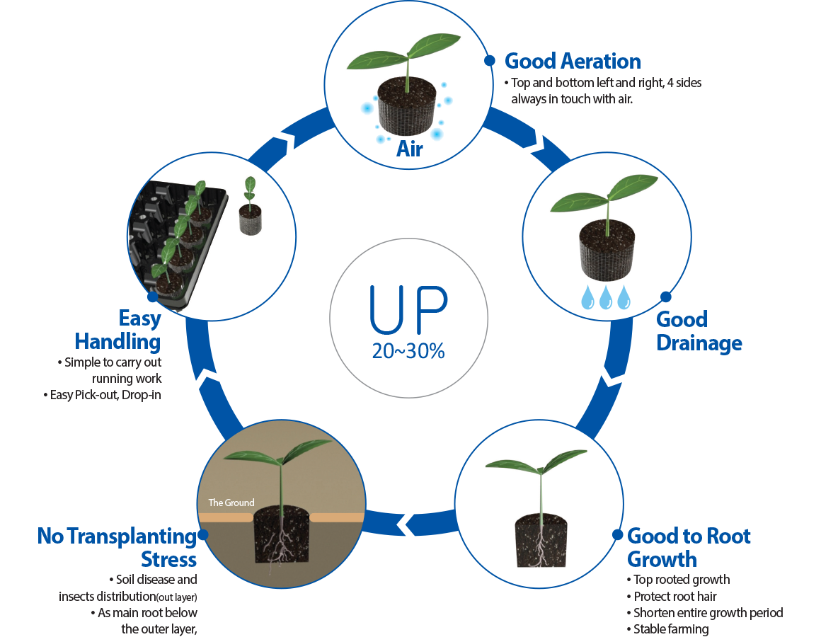 - Irrigating function to improved water content(50% ⇒ 60%)